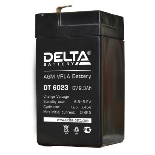 DT 6023 (75) – герметизированный VRLA свинцово-кислотный аккумулятор напряжением 6В, емкостью 2.3 Ач, разработанный для эксплуатации в слаботочных системах. Изготавливается по технологии AGM (электролит, абсорбированный в стекловолоконном сепараторе).
