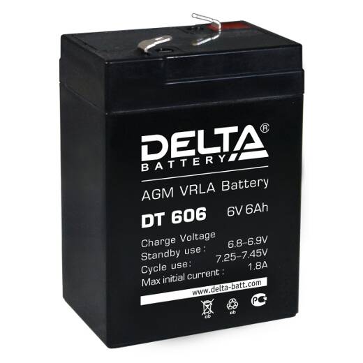 DT 606 – герметизированный VRLA свинцово-кислотный аккумулятор напряжением 6В, емкостью 6 Ач, разработанный для эксплуатации в слаботочных системах. Изготавливается по технологии AGM (электролит, абсорбированный в стекловолоконном сепараторе).