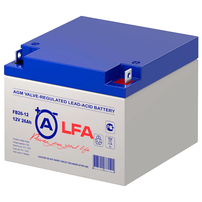 FB26-12 – аккумуляторная необслуживаемая батарея общего применения, имеет небольшие массогабаритные показатели, способна работать в циклическом режиме, герметизирована - работоспособна в любом положении, безопасна в эксплуатации, имеет низкий уровень саморазряда, высоконадежна.