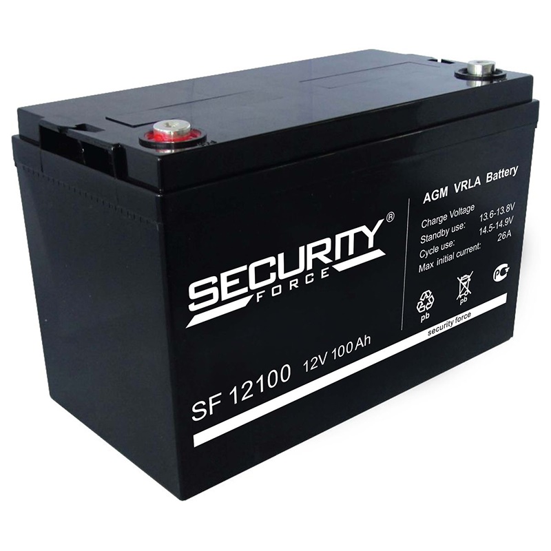SF 12100 – необслуживаемая аккумуляторная батарея (аккумулятор) емкостью 100 Ач применяется для обеспечения автономного и бесперебойного резервного питания в различных слаботочных системах с напряжением 12В. Чаще всего используется в составе блоков бесперебойного питания (ББП). Также подходит для питания эхолотов, навигаторов, металлоискателей и другого оборудования, где требуется переносной автономный 12-вольтовый источник питания.