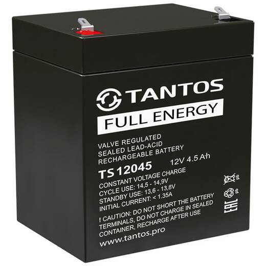 TS 12045 – свинцово-кислотный аккумулятор для резервного электропитания приборов, систем охранной и пожарной сигнализации.