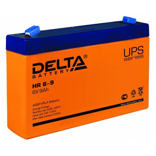 HR 6-9 (634W) – герметизированный необслуживаемый свинцово-кислотный аккумулятор напряжением 6В, емкостью 9 Ач с системой рекомбинации газов (VRLA). Изготавливается по технологии AGM (электролит, абсорбированный в стекловолоконном сепараторе), благодаря которой аккумулятор не требует долива дистиллята на протяжении всего срока службы. Аккумулятор относится к линейке DELTA UPS series, разработанной специально для использования в источниках бесперебойного питания.