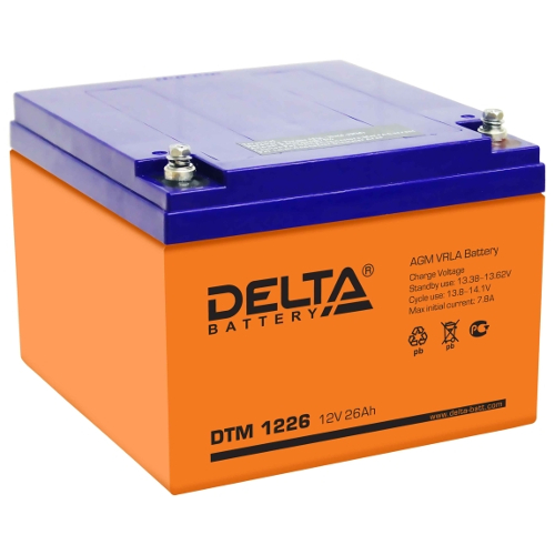 DTM 1226 – герметизированный необслуживаемый свинцово-кислотный аккумулятор напряжением 12В, емкостью 26 Ач с системой рекомбинации газов (VRLA). Изготавливается по технологии AGM (электролит, абсорбированный в стекловолоконном сепараторе). Рекомендован для использования как в буферном, так и в циклическом режимах работы. Предназначен для применения в переносных и портативных приборах, подходит для использования в источниках резервного энергоснабжения и блоках резервного питания.