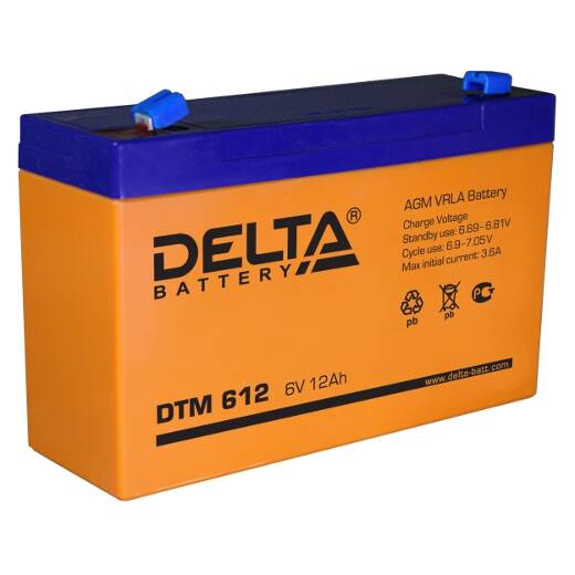 DTM 612 – герметизированный необслуживаемый свинцово-кислотный аккумулятор напряжением 6В, емкостью 12 Ач с системой рекомбинации газов (VRLA). Изготавливается по технологии AGM (электролит, абсорбированный в стекловолоконном сепараторе). Рекомендован для использования как в буферном, так и в циклическом режимах работы. Предназначен для применения в переносных и портативных приборах, подходит для использования в источниках резервного энергоснабжения и блоках резервного питания.