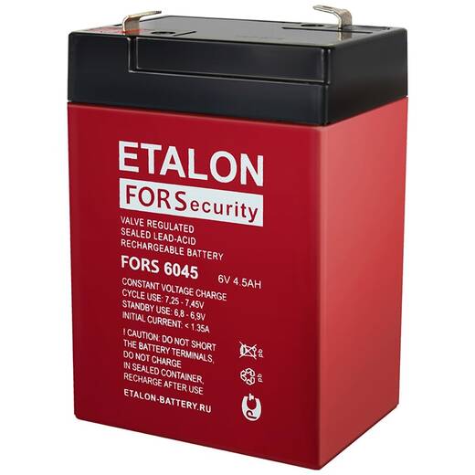 FORS 6045 – стационарный свинцово-кислотный необслуживаемый аккумулятор 6 В, 4.5 Ач, используется на малых токах разряда, преимущественно в буферном режиме. Изготовлен по технологии AGM.
