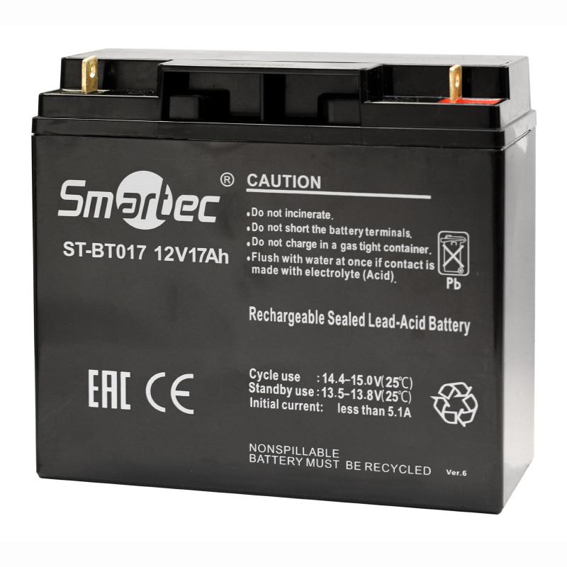 ST-BT017 – аккумуляторная батарея, предназначена для использования в составе блоков бесперебойного питания для электропитания устройств систем контроля доступа, охранно-пожарной сигнализации и видеонаблюдения. Свинцово-кислотная батарея с клапанным регулированием (VRLA) с применением AGM технологии обеспечивает высокую производительность и удобство эксплуатации.