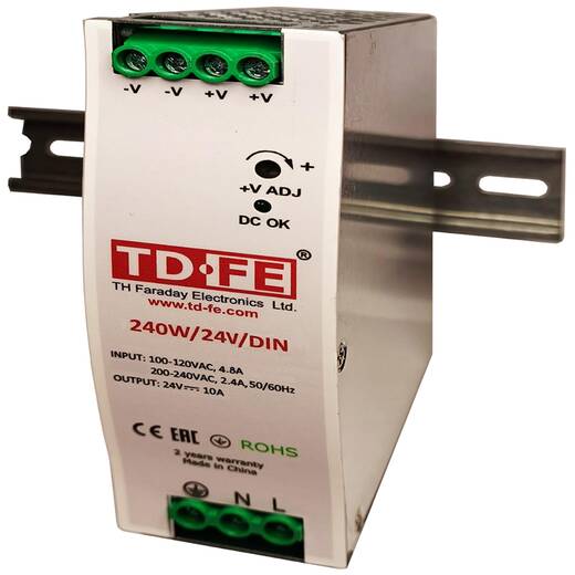 240W/24V/DIN – блок питания с автоматической защитой от перегрузок, КЗ и перегрева.
