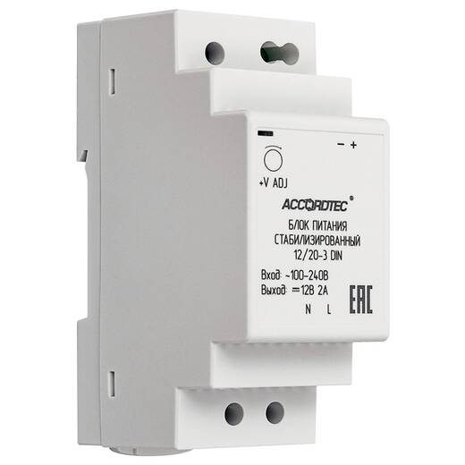 AT-12/20-3 DIN – источник стабилизированного питания с креплением на DIN рейку, предназначен для видеонаблюдения / для СКУД / для ОПС / для контроля доступа / для помещения.