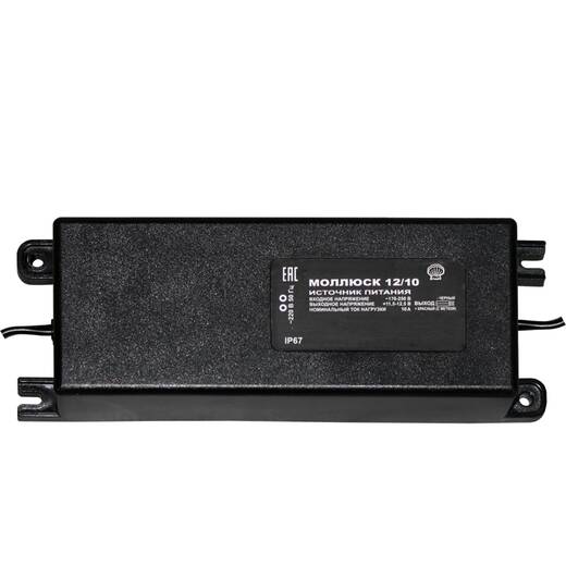 МОЛЛЮСК-12/10 – источник питания предназначен для питания радиоэлектронных устройств широкого применения напряжением 12В постоянного тока от сети переменного тока напряжением 220В, защищен от перегрузки и короткого замыкания на выходе, работоспособен на холостом ходу.