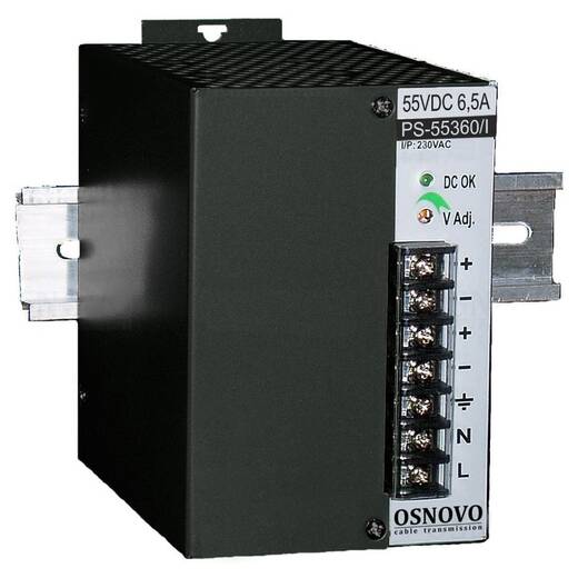 PS-55360/I – промышленный блок питания для подачи постоянного напряжения 55 В от электрической сети (AC220V). Дополнительными функциями блока питания являются стабилизация тока и защита от коротких замыканий и перепадов напряжения.