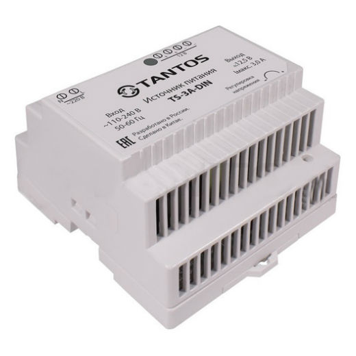 TS-3A-DIN – источник стабилизированного питания 12 В, 3 А, устанавливаемый на DIN-рейку. Встроенная защита от короткого замыкания нагрузки, перегрузки по напряжению и току.