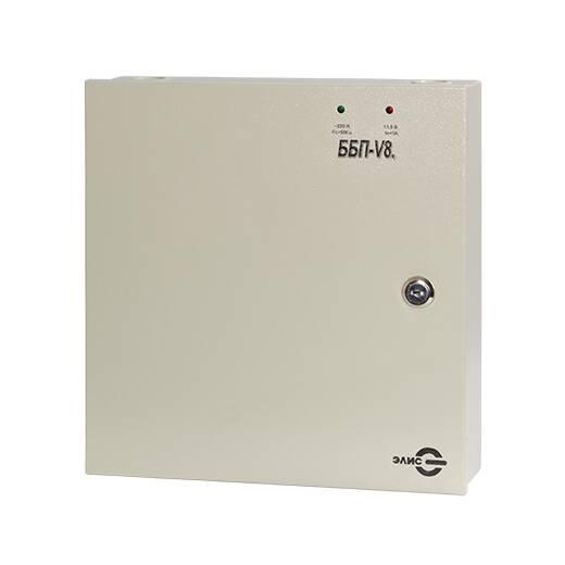 ББП-V.8 – профессиональный источник бесперебойного питания, предназначенный для электропитания оборудования видеонаблюдения напряжением 12В. Блок относится к I классу защиты от поражения электрическим током по ГОСТ 12.2.007.0-75, рассчитан на круглосуточную работу.
