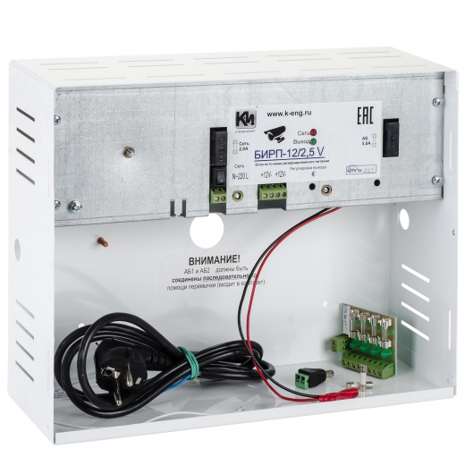 БИРП-12/2,5V (VIDEO) – блок питания предназначен для бесперебойного питания системы видеонаблюдения регулируемым стабилизированным напряжением (по умолчанию - 12В), что гарантирует стабильную работу элементов системы CCTV при переходе на резервное питание от аккумуляторной батареи.