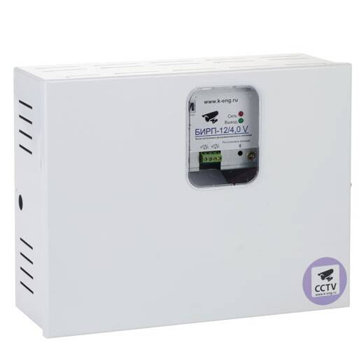 БИРП-12/4,0V (VIDEO) – блок питания предназначен для бесперебойного питания системы видеонаблюдения регулируемым стабилизированным напряжением (по умолчанию - 12В), что гарантирует стабильную работу элементов системы CCTV при переходе на резервное питание от аккумуляторной батареи.