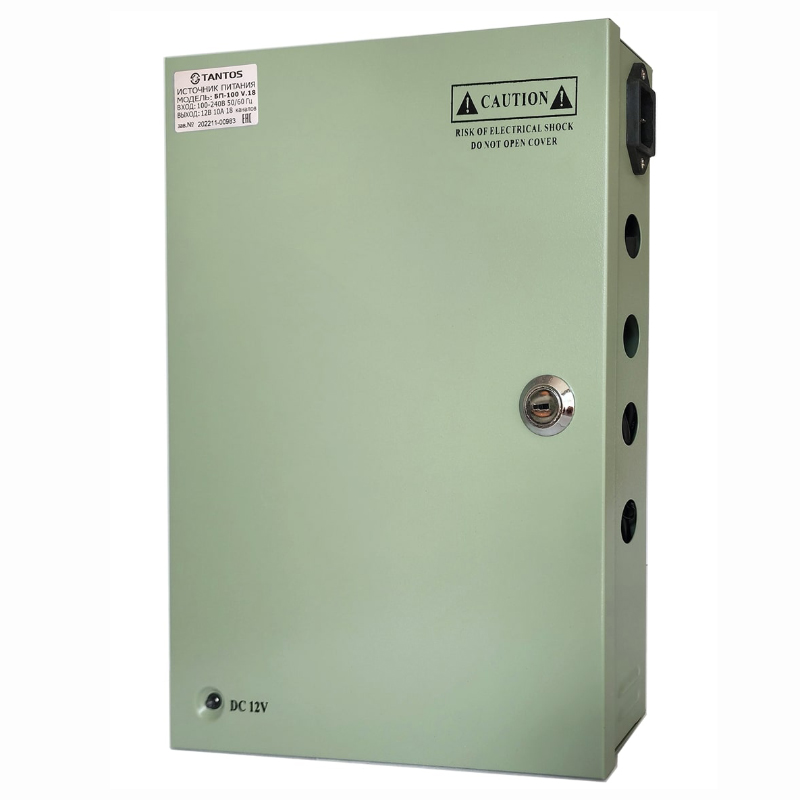 БП-100 V.18 – источник вторичного питания 12 В, 10 А, 110 Вт. 18 выходов × 0.5 А для питания видеокамер.