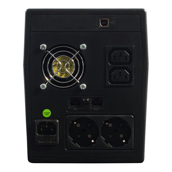 Встроенный стабилизатор (диапазон сети 162-290 В), защита от всплесков напряжения, защита от перегрузки. 4 выходных разъема: 2 шт. IEC 320 C13 (компьютерный), 2 шт. CEE 7/4 (розетка с заземлением).