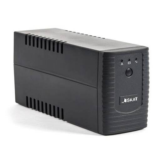 SKAT-UPS 600-IN-1x7 (SKAT-UPS 600/350) – источник бесперебойного питания 220 В, 600 ВА (350 Вт), встроенный АКБ 7 Ач, время резерва 3 минуты, холодный старт, модифицированный синус, световая и звуковая индикация режимов работы, связь и управление ПК по USB. Встроенный стабилизатор (диапазон сети 170-270 В), защита от всплесков напряжения, защита от перегрузки. 2 выходных разъема: 1 шт. IEC 320 C13 (компьютерный), 1 шт. CEE 7/4 (розетка с заземлением).