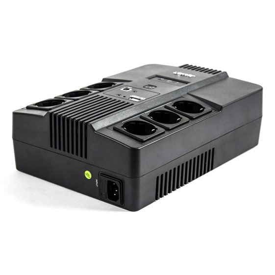 Встроенный стабилизатор (диапазон сети 170-270В), защита от всплесков напряжения, защита от перегрузки. 6 выходных разъемов: 3 шт. CEE 7/4 (розетка с заземлением) с питанием от АКБ, 3 шт. CEE 7/4 (розетка с заземлением) без питания от АКБ.