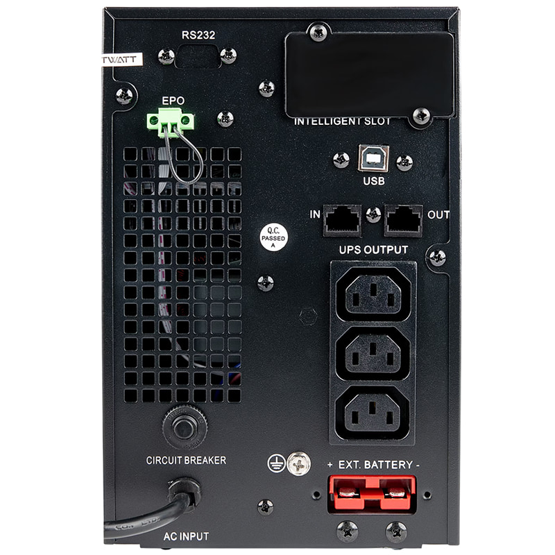 - коммуникационные интерфейсы: RJ11, RJ45, USB порт, SNMP, контакт EPO;