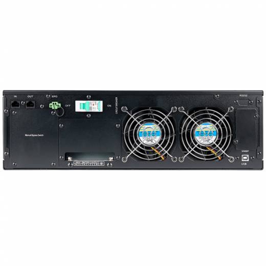 Поддерживает подключение внешних аккумуляторов и батарейных блоков для увеличения времени резервирования. Оснащен функцией экстренного отключения EPO, что защищает оборудование от повреждений при чрезвычайных ситуациях.
