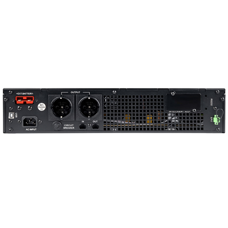Поддерживает подключение внешних аккумуляторов и батарейных блоков для увеличения времени резервирования. Оснащен функцией экстренного отключения EPO, что защищает оборудование от повреждений при чрезвычайных ситуациях.