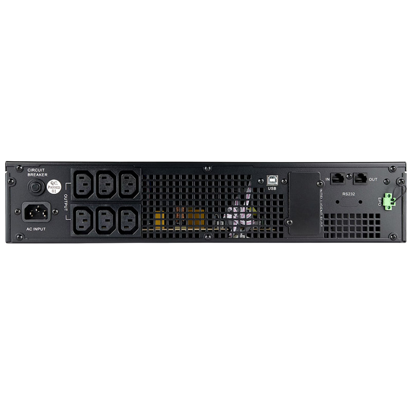 Наличие встроенных аккумуляторных батарей обеспечивает необходимое время резерва для подключеннной нагрузки. Оснащен функцией экстренного отключения EPO, что защищает оборудование от повреждений при чрезвычайных ситуациях.