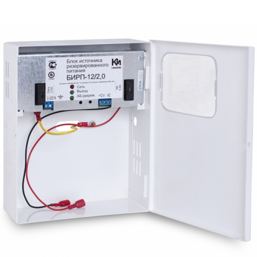 При отключении сетевого напряжения БИРП-12/2,0 обеспечивает питание нагрузки от резервного источника электропитания – аккумуляторной батареи (в комплект не входит). Продолжительность автономной работы от аккумуляторной батареи при номинальной выходной мощности составляет 3 часа.