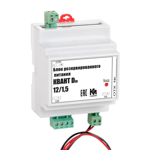 При отсутствии напряжения в сети переменного тока 220В 50Гц блок автоматически обеспечивает питание электропотребителей от подключаемой к нему внешней аккумуляторной батареи (АБ). Блок выпускается в корпусе с креплением на DIN рейку 35мм, что позволяет легко и компактно смонтировать его в электротехнический шкаф.