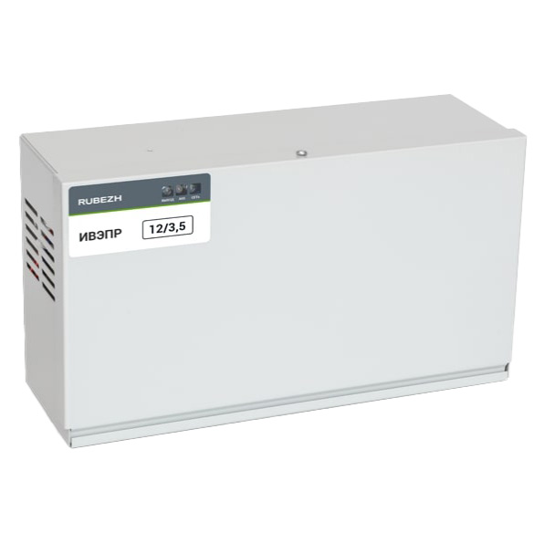 ИВЭПР 12/3,5 2х17-Р БР – импульсный источник питания номинальным постоянным напряжением 12 В и выходным током до 3.5 А. Предназначен для стабильного бесперебойного электропитания средств охранной и пожарной сигнализации, а также систем видеонаблюдения.