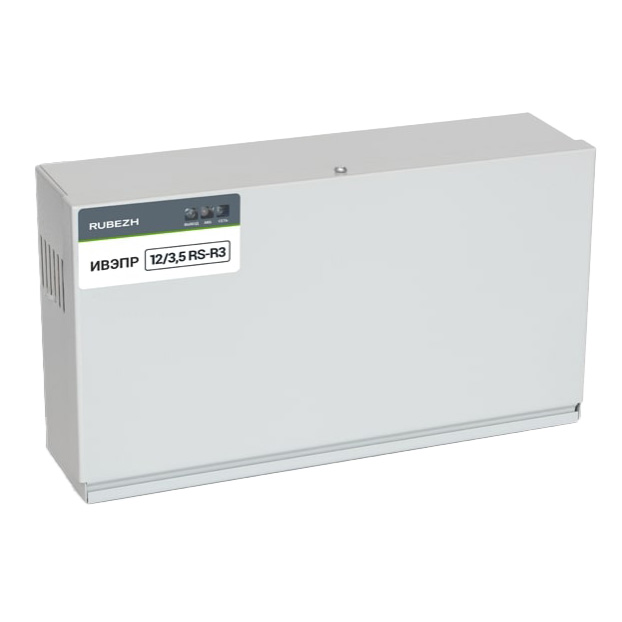ИВЭПР 12/3,5 RS-R3 2х12 БР – источник вторичного электропитания резервированный адресный, предназначен для бесперебойного электропитания устройств адресной системы ОПС Рубеж с напряжением питания 12 В постоянного тока.