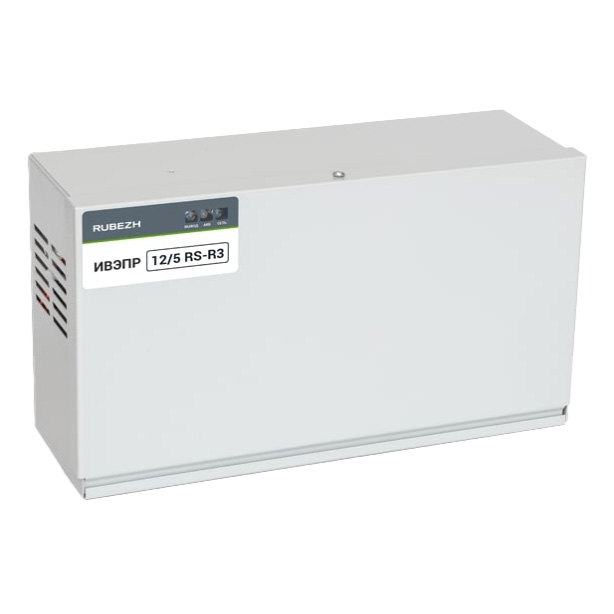 ИВЭПР 12/5 RS-R3 2х12 БР – источник вторичного электропитания резервированный адресный, предназначен для бесперебойного электропитания устройств адресной системы ОПС Рубеж с напряжением питания 12 В постоянного тока.