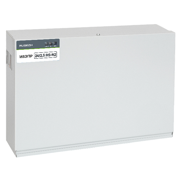 ИВЭПР 24/2,5 RS-R2 – источник питания, имеет адрес в системе, а также функцию формирования и передачи по адресной линии связи информации о своем состоянии в приемно-контрольные приборы адресной системы GLOBAL по адресной линии связи, с использованием протокола передачи данных RS-R2. Источник обеспечивает стабильное круглосуточное электропитание оборудования систем охранной и пожарной сигнализации, номинальным напряжением 24 В и постоянным током до 2.5 А. Резервирование осуществляется от двух герметизированных свинцовых аккумуляторных батарей номинальным напряжением 12 В, емкостью 17 Ач.
