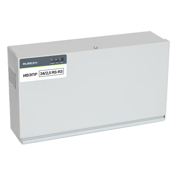 ИВЭПР 24/2,5 RS-R3 2х7 БР – источник вторичного электропитания резервированный адресный, предназначен для бесперебойного электропитания устройств адресной системы ОПС Рубеж с напряжением питания 24 В постоянного тока.