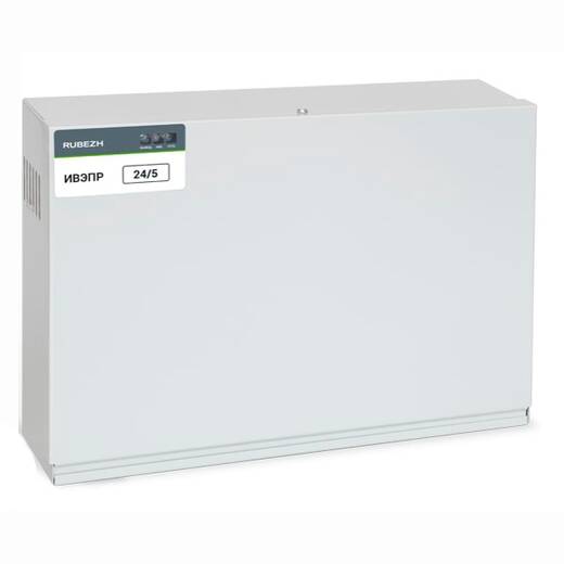 ИВЭПР 24/5 2х17-Р БР – источник вторичного электропитания номинальным постоянным напряжением 24 В и выходным током до 5 А. Предназначен для стабильного бесперебойного электропитания систем охранной и пожарной сигнализации, пожаротушения, дымоудаления и оповещения.