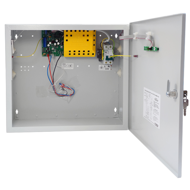 - Измерение и передача данных по запросу от С2000М или АРМ Орион Про: напряжение в сети, напряжение на каждой АБ, напряжение на выходе, ток нагрузки, температуры внутри корпуса РИП;