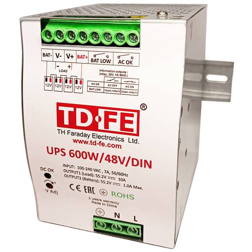 UPS 600W/48V/DIN – блок бесперебойного питания с автоматической защитой от перегрузки, короткого замыкания и глубокого разряда АКБ, перегрева.