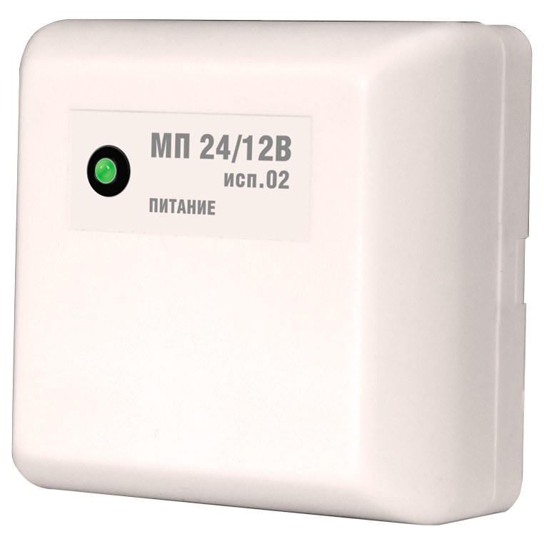 МП 24/12В исп.02 – модуль преобразователя, предназначен для бесперебойного круглосуточного питания оборудования ОПС, видеокамер, систем контроля доступом, а также различного телекоммуникационного оборудования (например, модемов и коммуникаторов Zelax SHDSL, D-Link Media converter, qBRIDGE SHDSL, NETGAR Gigabit Switch) при совместной работе с резервированными источниками питания РИП-24 или им подобными.