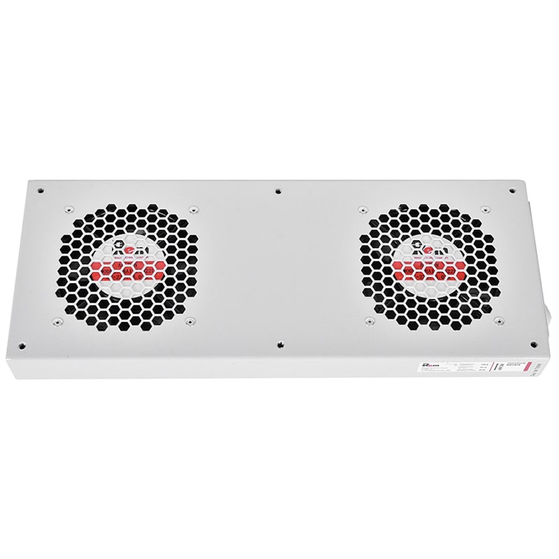 Модуль вентиляторный с 2 односкоростными, осевыми вентиляторами с изменением направления потока и терморегулятором. Порог включения задается в пределах от 0 до +60°С, порог выключения - понижение температуры на 7°С от заданной.