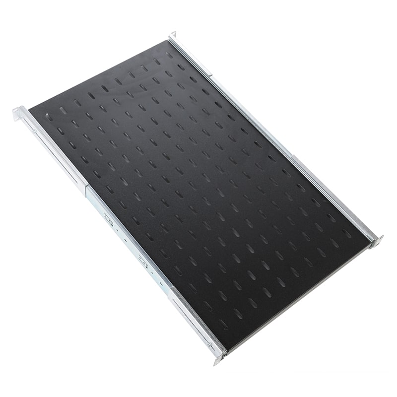 ТСВ-45-9005 – полка предназначена для размещения нестандартного оборудования, которое требует периодического обслуживания, также удобна для временного размещения диагностического и монтажного оборудования. Имеет телескопические направляющие, обеспечивающие плавное выдвижение. Монтажные кронштейны фиксируют полку к вертикальным направляющим шкафов и стоек в четырех местах. Глубина монтажных кронштейнов регулируется, что позволяет устанавливать полку на необходимую глубину. Полка перфорирована для свободного прохождения охлаждающего воздуха. Несет нагрузку до 30 кг.
