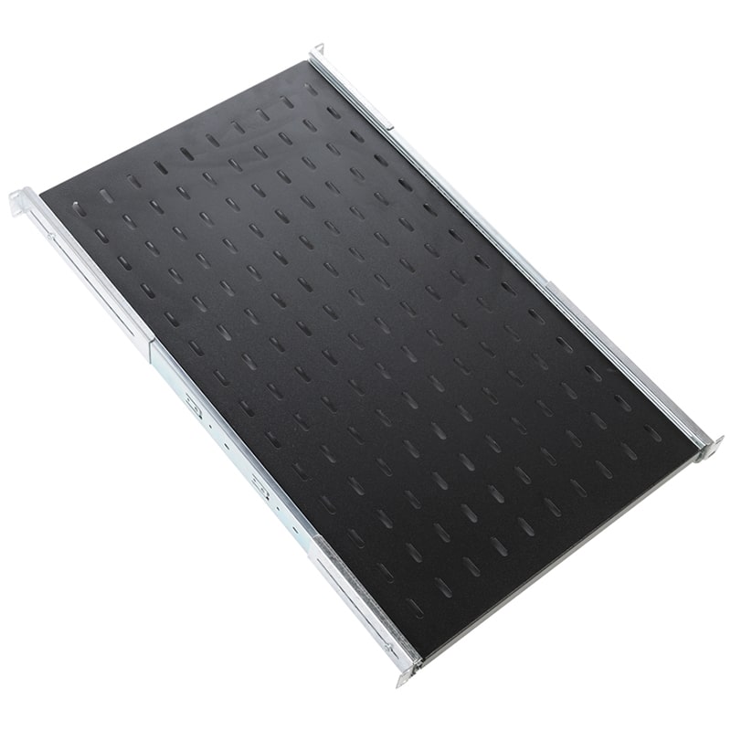 ТСВ-58-9005 – полка предназначена для размещения нестандартного оборудования, которое требует периодического обслуживания, также удобна для временного размещения диагностического и монтажного оборудования. Имеет телескопические направляющие, обеспечивающие плавное выдвижение. Монтажные кронштейны фиксируют полку к вертикальным направляющим шкафов и стоек в четырех местах. Глубина монтажных кронштейнов регулируется, что позволяет устанавливать полку на необходимую глубину. Полка перфорирована для свободного прохождения охлаждающего воздуха. Несет нагрузку до 30 кг.