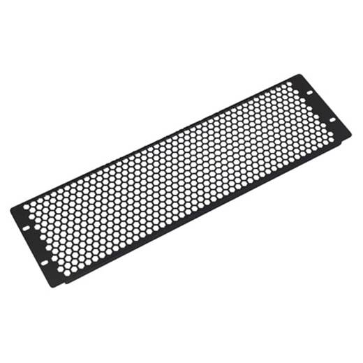 ФП-3.4-9005 – перфорированная фальшпанель в шкаф 19" для блокировки свободного пространства вертикальных (юнитовых) направляющих, препятствует механическому воздействию на кабельные каналы.