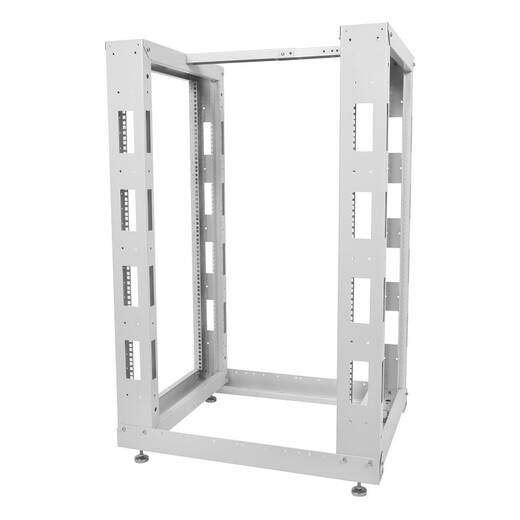 Стойка имеет полностью разборную двухрамную конструкцию, каркас повышенной жесткости скреплен болтами с внутренними шестигранниками. Вертикальные направляющие имеют юнитовую маркировку. Для удобства монтажа и коммутации оборудования предусмотрены развитая перфорация, широкий спектр аксессуаров и система заземления. Стойка имеет регулировку полезной глубины – 750/620/580/450 мм. При организации крупных коммутационных узлов возможно крепление стоек между собой через вертикальный кабельный органайзер. Удобство установки обеспечивают массивные опорные кронштейны и регулируемые винтовые опоры (ножки), компенсирующие неровности пола.