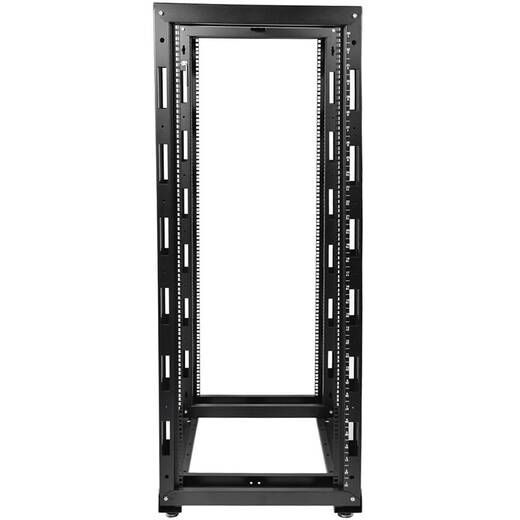 Стойка имеет полностью разборную двухрамную конструкцию, каркас повышенной жесткости скреплен болтами с внутренними шестигранниками. Вертикальные направляющие имеют юнитовую маркировку. Для удобства монтажа и коммутации оборудования предусмотрены развитая перфорация, широкий спектр аксессуаров и система заземления. Стойка имеет регулировку полезной глубины – 750/620/580/450 мм. При организации крупных коммутационных узлов возможно крепление стоек между собой через вертикальный кабельный органайзер. Удобство установки обеспечивают массивные опорные кронштейны и регулируемые винтовые опоры (ножки), компенсирующие неровности пола.