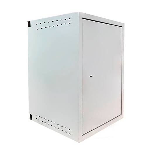 Шкаф изготовлен из листовой стали толщиной 1.2-2 мм, имеет цельносварной корпус. Ребрами жесткости усилен периметр шкафа, а также дверь по периметру и центру. Монтажные отверстия задней стенки шкафа также усилены пластинами. Противосъемные штыри выполнены из стального круга диаметром не менее 6мм.