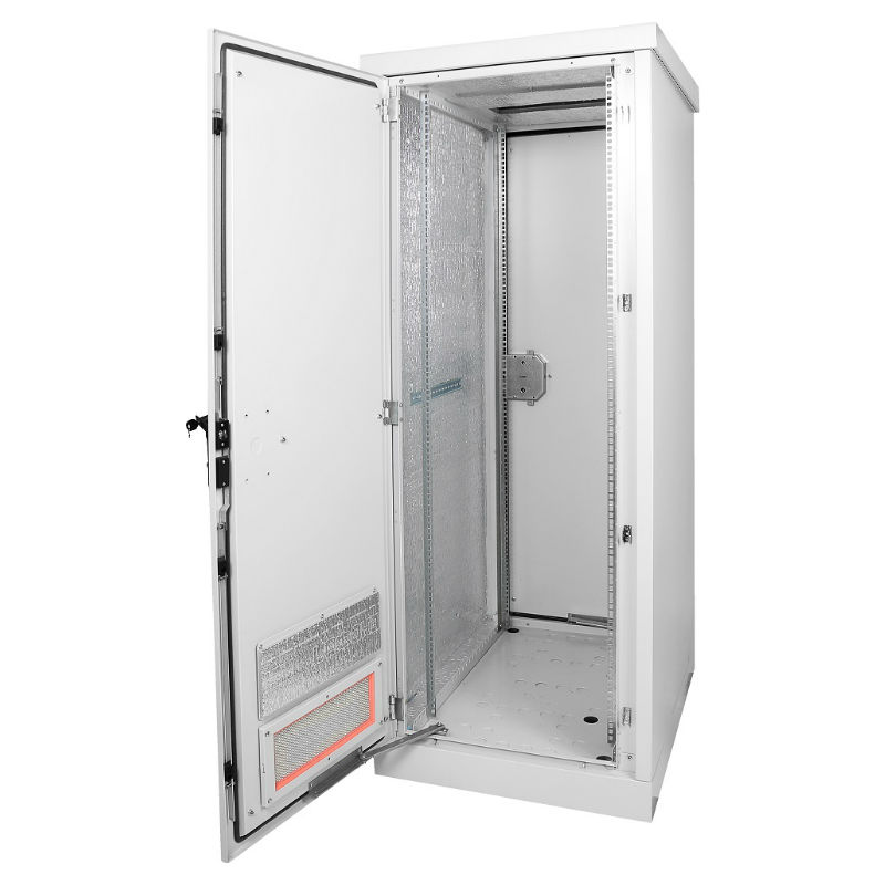 Опционально на дверь устанавливаются дополнительный антивандальный замок и полка для документов. Вместо двери можно становить стенку (в комплект поставки не входит). Передняя дверь имеет жалюзи для обеспечения вентиляции. Крыша шкафа съёмная, имеет небольшой уклон и систему «антикапля», которая отводит воду без попадания её на уплотнитель шкафа, благодаря чему дверь не примерзает в холодный период года. Транспортировочные уши под крышей позволяют поднимать шкаф на требуемую высоту, либо транспортировать его с применением спец. устройств. Опционально вместо стандартной крыши можно установить крышу с выдвижным козырьком. Фиксация шкафа к подготовленному основания осуществляется через 4 втулки М12 в основании шкафа.