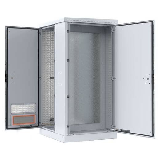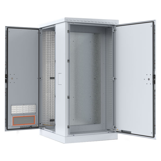 Телекоммуникационный отсек комплектуется двумя парами вертикальных направляющих 19”, двумя DIN-рейками и двумя воздушными фильтрами. Доступ в отсек осуществляется через переднюю вентилируемую и заднюю двери. Двери с пенорезиновым уплотнителем запираются ригельными замками. Опционально отсек делится на телекоммуникационный и акуммуляторный с использованием разделительной полки.
