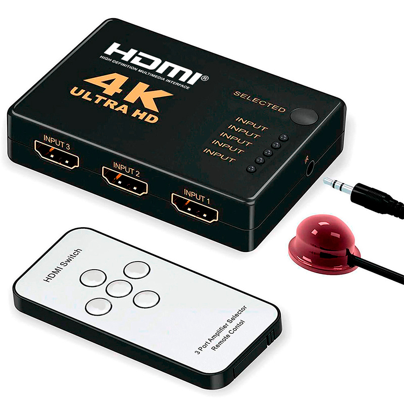 HN-SW51 - свитчер/переключатель/концентратор/коммутатор HDMI сигнала. Позволяет подключить 5 источников к одному приемнику (1 монитор, проектор). Не требует питания. Управление переключением происходит либо кнопкой на устройстве, либо с помощью ИК пульта, для которого предусмотрен в комплекте выносной приемник. При появлении сигнала на одном из входов, происходит автоматическое переключение на данный вход. Поддерживает разрешение до 4К.