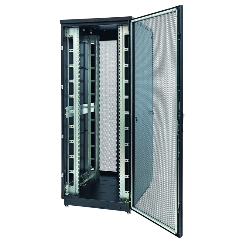 60F-42-8A-34BL – шкаф Racknet S3000 42U 800×1000, передняя дверь перфорированная одностворчатая, задняя дверь перфорированная двустворчатая.