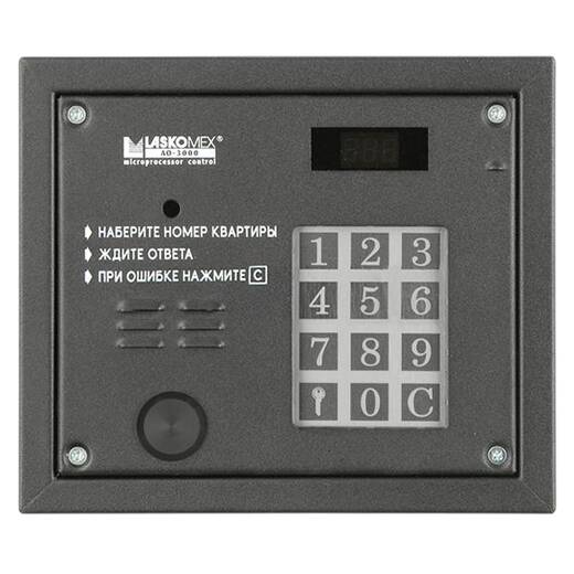 AO-3000 VPR (CP-3000 VPR) (черный) – вандалозащищенный пульт домофона. Встроенный PROXY считыватель. Посадочное место для видеокамеры. Четырехразрядная индикация. Подсветка наборного поля и считывателя. Для работы совместно с блоками электроники EC-3000, EC-2502, EC-2502V и блоком питания EDEL.