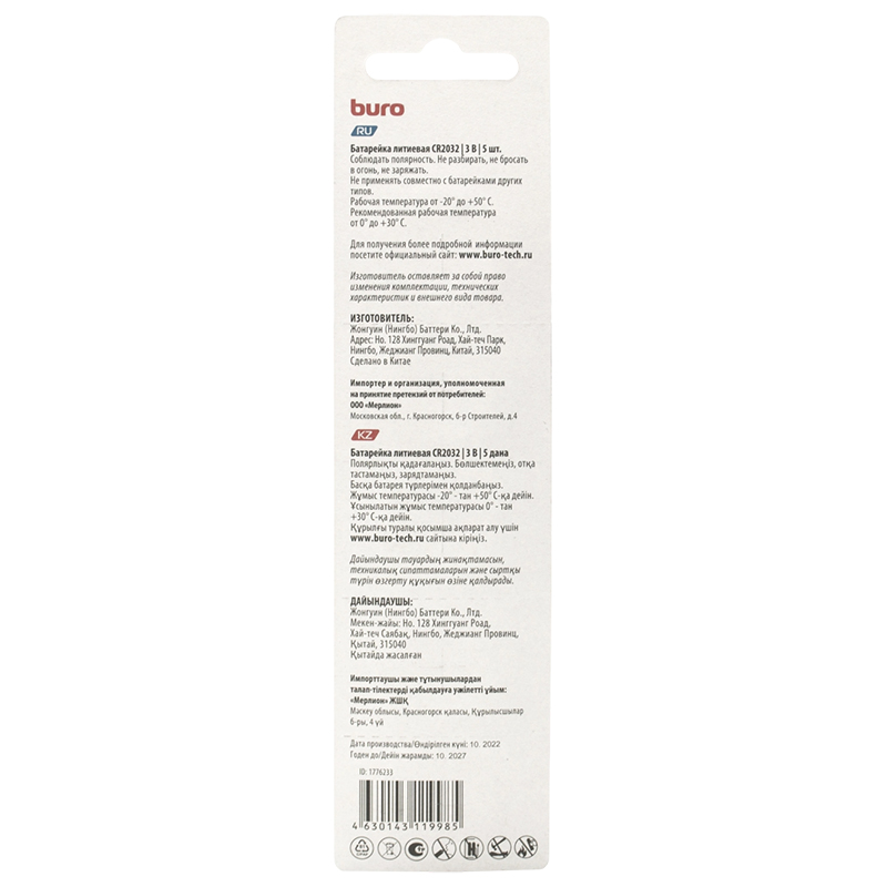 Buro Lithium CR2032 (5 шт) – батарейка.
